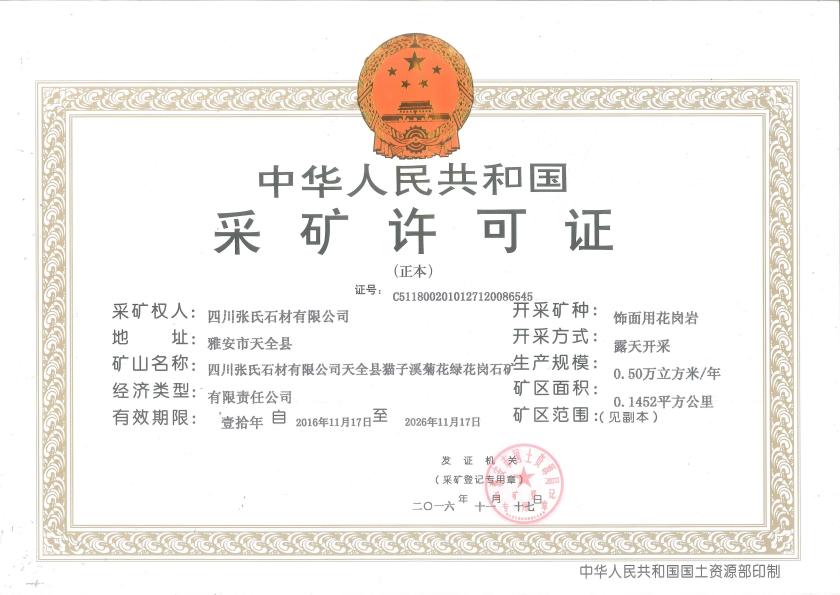四、菊花绿开采许可证: